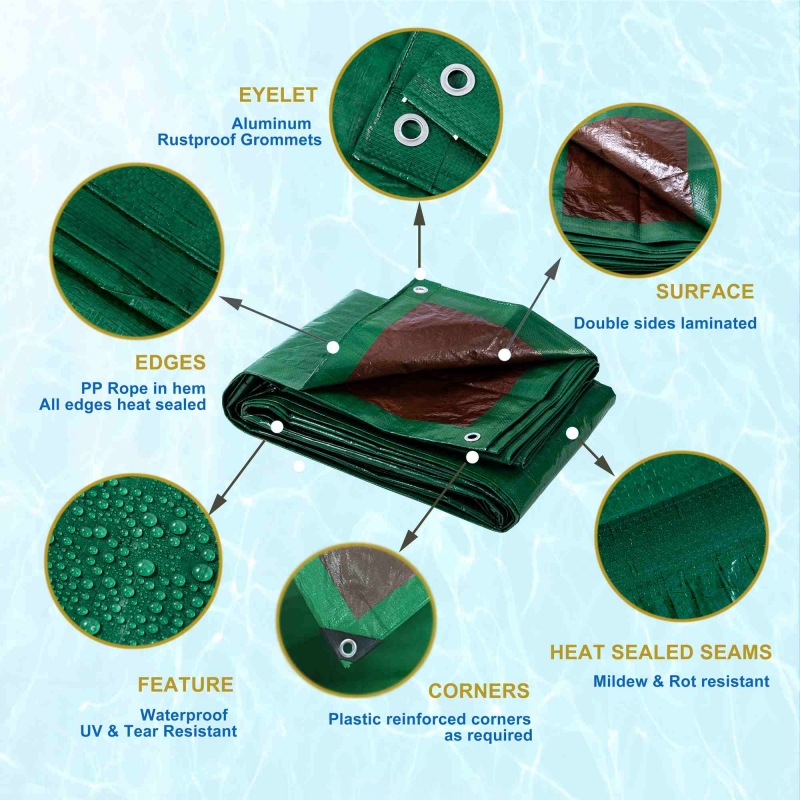 8'x10 '110GSM Brown Brown Brown Green Pe Te Tarpaulin